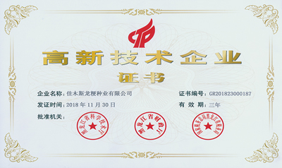 龙粳种业荣获高新技术企业称号